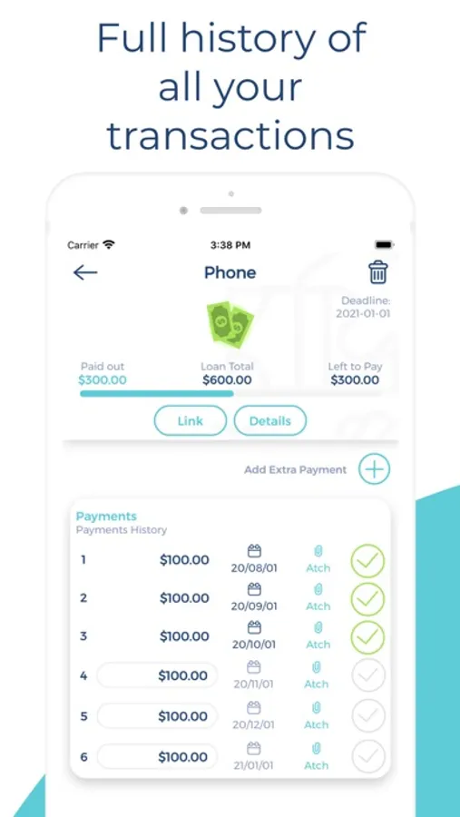 * Create any type of loan or debt: the application is so versatile that you can play with the necessary variables to define different types of loans and debts.