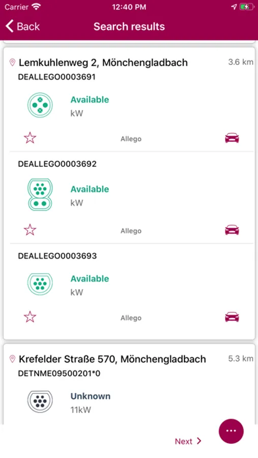Search by city, zip code or charging station number. Use the search list for an overview of the charging stations that are currently available to you.