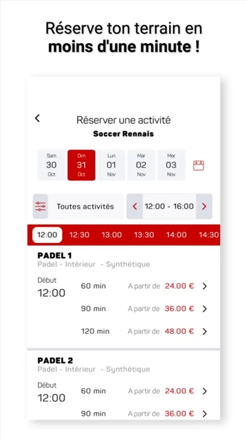 Organise tes matchs en 2 clics et rejoins une communauté de joueurs de soccer et de padel autour de toi !