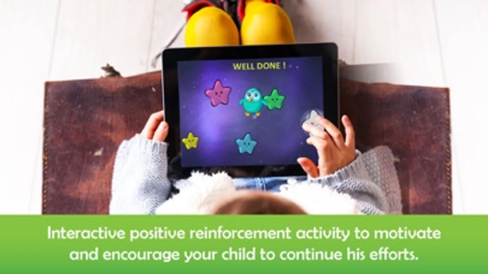 "Ooly Stories" is an educational and positive reinforcement App, it is not a bedtime story app. Watching a screen before bed and interaction with one impairs sleeping. Screen-based stories should not be used as a method to help a child sleep.