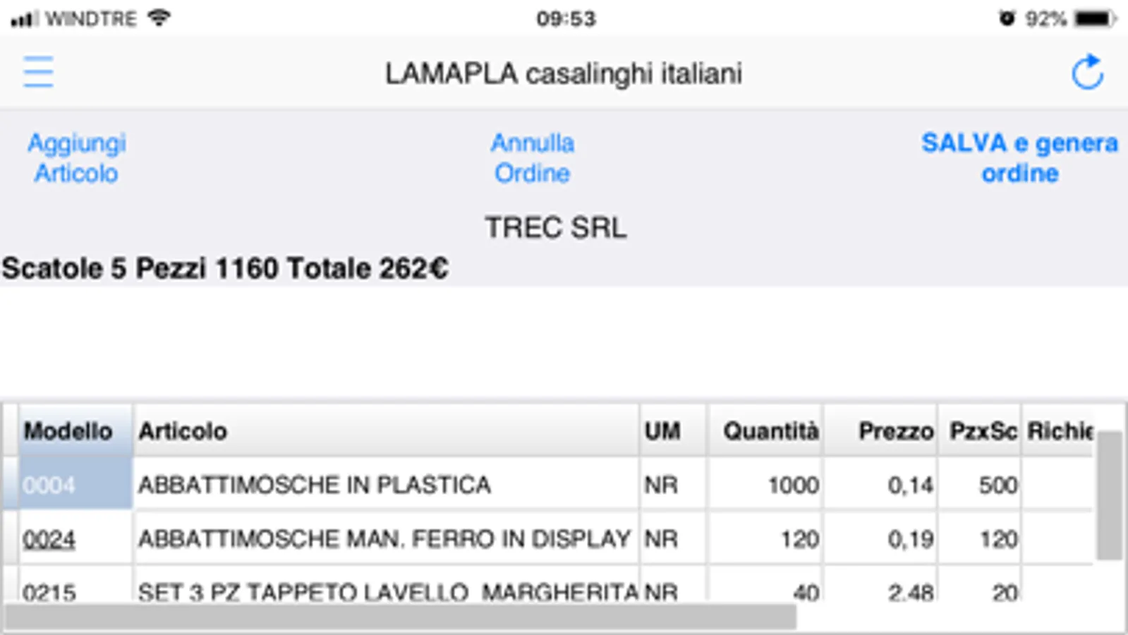 Dal catalogo si possono effettuare direttamente gli ordini dei prodotti.