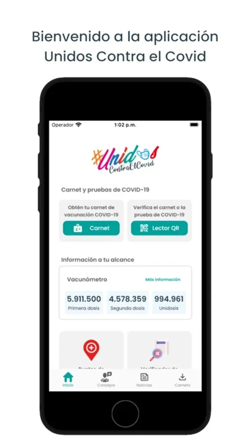 Bienvenido a la aplicación #UnidosContraElCovid, en la que encontrarás información oficial referente a los síntomas, la prevención y la vacunación contra el virus COVID-19 en Bolivia.