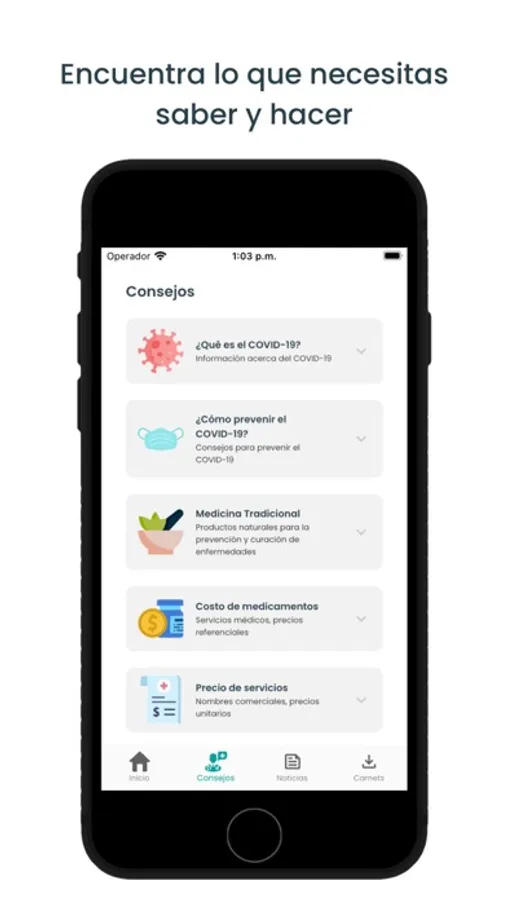 También accederás a la información más relevante para la prevención y contención del virus, como ser el costo de los medicamentos, el costo de servicios médicos, o a contactarte con un médico en línea.