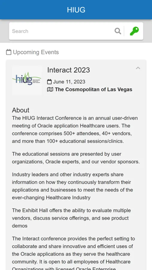 The HIUG Interact Conference is an annual user-driven meeting of Oracle application Healthcare users. The conference comprises 600+ attendees, 40+ vendors, and more than 175 educational sessions/clinics.