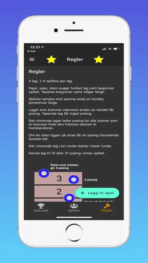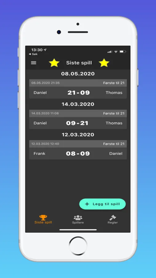 I Shuffleboard Ranking kan du følge din egen rangering i forhold til andre spillere som benytter det samme Shuffleboard som deg. Alle spillere registrerer sine spill, og applikasjonen vil vise deg hvordan du scorer i forhold til andre. Her kan se oversikt over spill som har vært i dag, denne uke, eller i hele spillperioden for det valgte Shuffleboard.