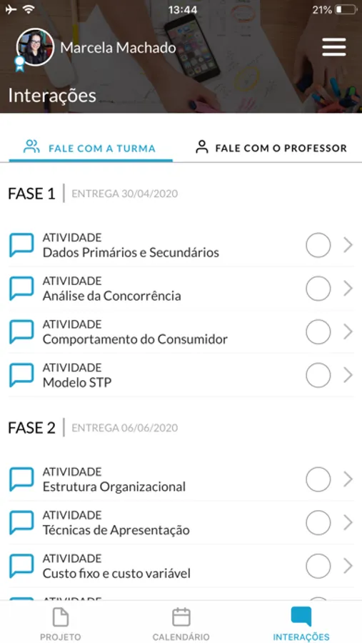 As suas atividades estarão estruturadas de uma forma lógica dentro dos seus objetivos de aprendizagem e através de uma interface intuitiva você terá um roteiro de estudo eficiente e dinâmico.