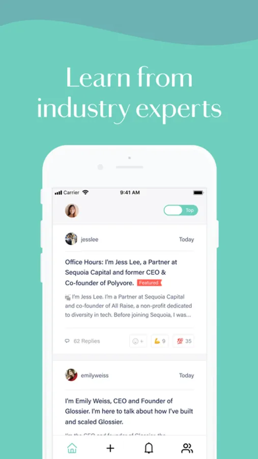 • Learn from experts during weekly office hours with industry experts like Emily Weiss and Aileen Lee.