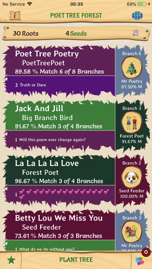 Introducing Poet Tree Poetry, a poetic social network and toolset to create and share poetry. The poetry is structured as a tree with verses as branches that can be arranged into different versions of poetry for collaboration or just yourself. The word and pattern tools include pattern matching statistics, rhyme and synonym word swap, rhymetionary word creation and many communication tools to aid your style in choosing best words.