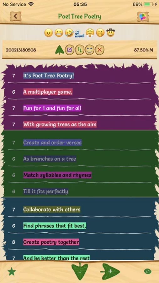 There’s interactive poetry that constantly evolves, traditional poetry that remains unchanged and everything between while being anonymous, multilingual or even hieroglyphical for free verse or rhyme patterns. To aid your style, syllables and rhymes are displayed as numbers and colors and used to calculate % Match of verses compared to other verses so patterns can easily be repeated or avoided.