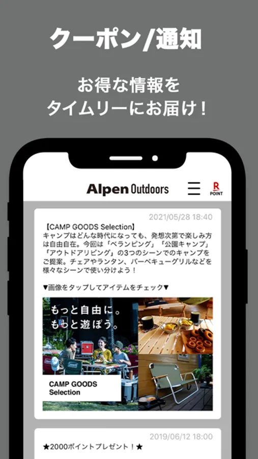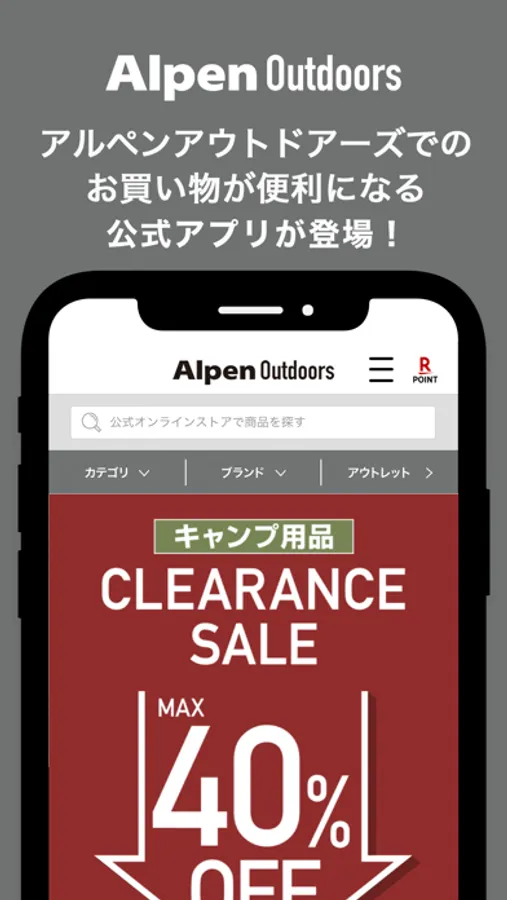 アルペングループが展開するアウトドア専門店「アルペンアウトドアーズ(Alpen Outdoors)」、「アルペンマウンテンズ(Alpen Mountains)」、「アルペンアウトドアーズフラッグシップストア(Alpen Outdoors FLAGSHIP STORE)」や、オンラインストアでのお買い物がもっと便利になる、アルペンアウトドアーズ公式アプリです。