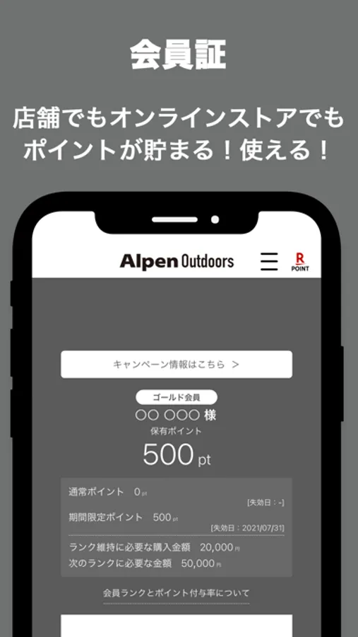 アルペングループメンバーズの会員登録が簡単にでき、全国のアルペングループの店舗やオンラインストアでのお買い物でポイントを貯めることができます。