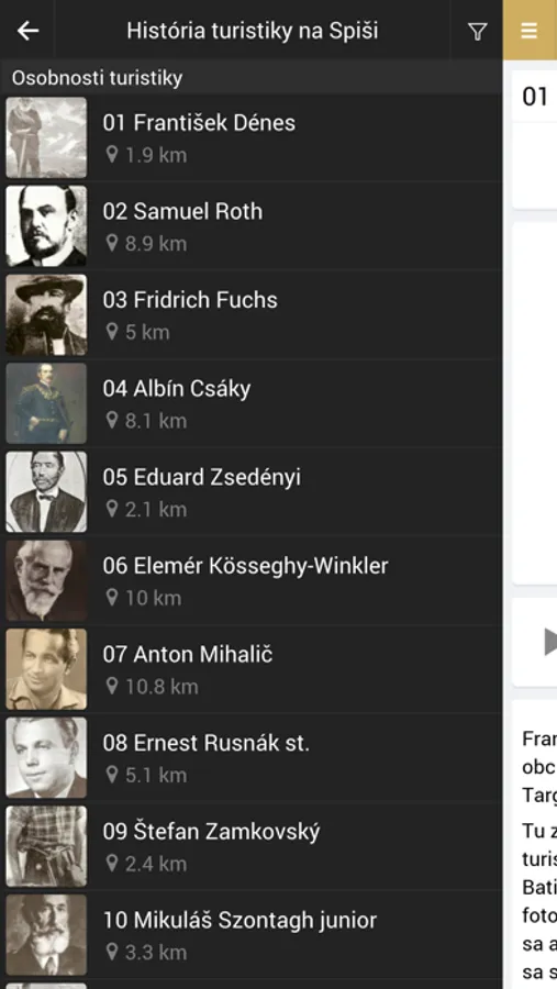 V mobilnej aplikácii sú nasledovné náučné chodníky: