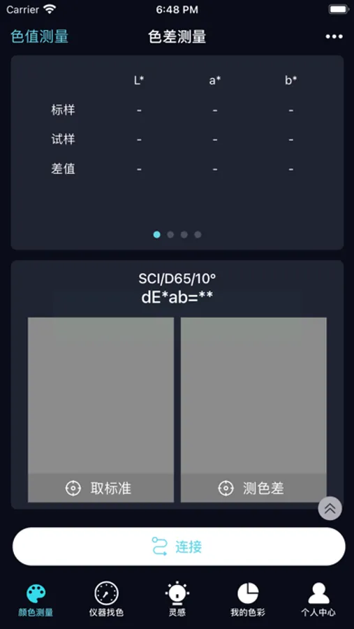 1、通过蓝牙连接测色仪,采集颜色数据,设置测色仪参数,对仪器进行校准等操作。