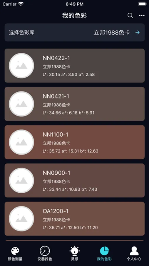 5、颜色查找,测量一个颜色,可以快速的在颜色数据库中间找到最接近的颜色数据。