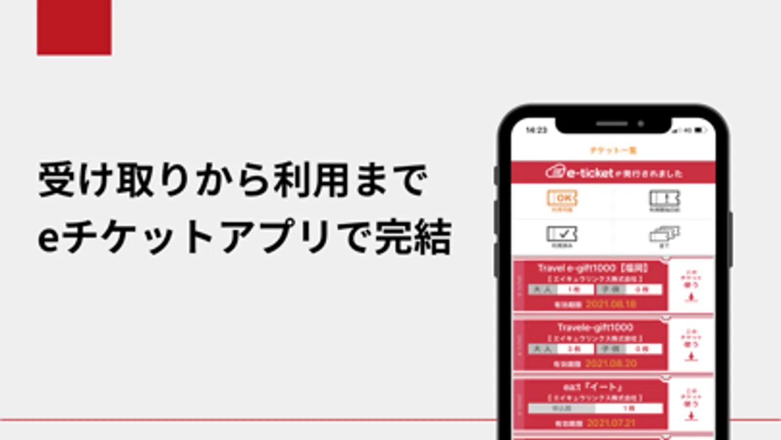 お持ちのスマートフォンがチケット代わりになる便利なアプリです。紙のクーポンをなくしてしまったなどのトラブルも「eチケットアプリ」なら、受け取り~利用がスマホで完結するため心配ありません。