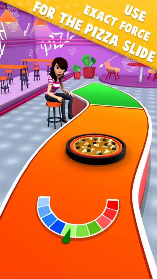 The Customers Wait!. They are counting on you to deliver the pizza. The counter is long with many obstacles. Can you apply the perfect force, so they can eat in peace. A fun hyper casual game for casual players.