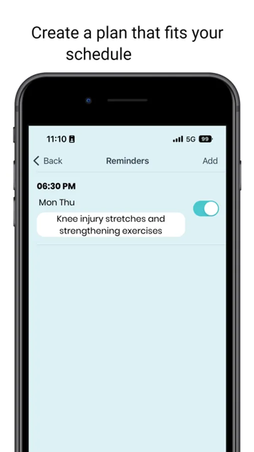 Easily track your fitness and rehabilitation progress. Log workout statistics including distance, time, & calories burned. Set a reminder for your exercises so you always stay on track.