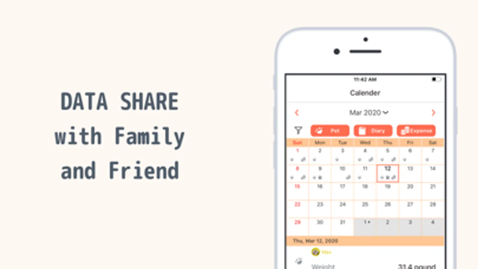 - You can check the records of pets, diaries and expenses on the form of calender.