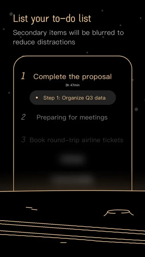 In fact, the first task you need to focus on is the first one, the other tasks should fade out of your view and don't need to be seen at this moment, so that you can reduce the visual burden and mental anxiety, and better complete the task at hand. That's what Goalo is designed to do, to help you block out distractions and focus on your primary task.