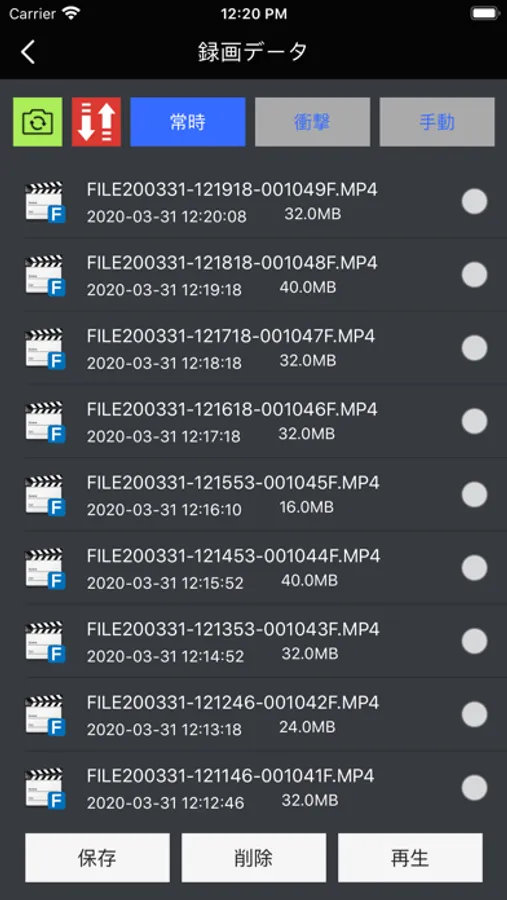 また、ドライブレコーダー本体のSDカードに記録された映像をiPhoneへ保存・再生したり、不用なファイルを削除することができます。