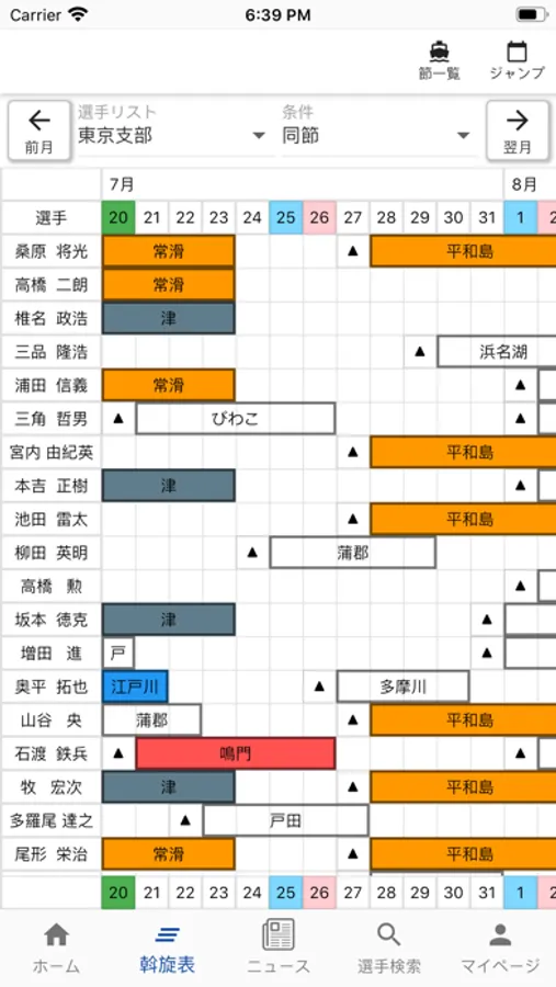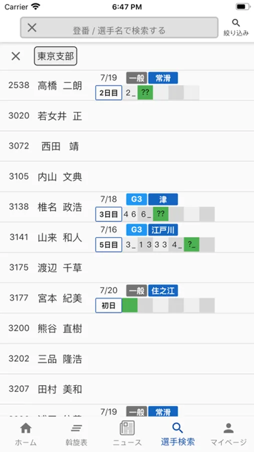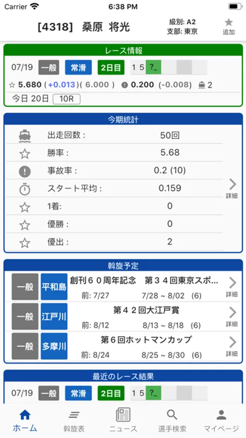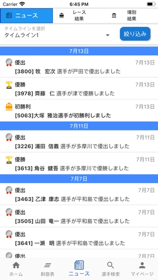 ・選手リストを作って今日のレース結果とニュースを一覧表示できます