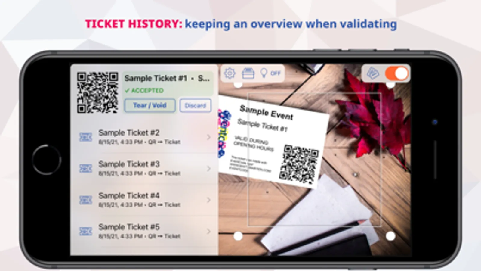 - scanning/verifying ticket barcodes with history logging and the ability to tear tickets digitally at check-in