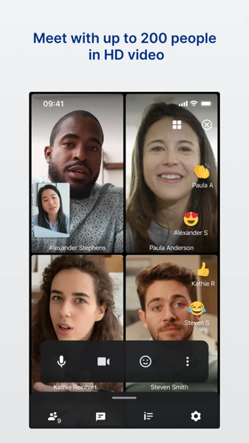 – Join video or audio conferences from anywhere with up to 200 attendees