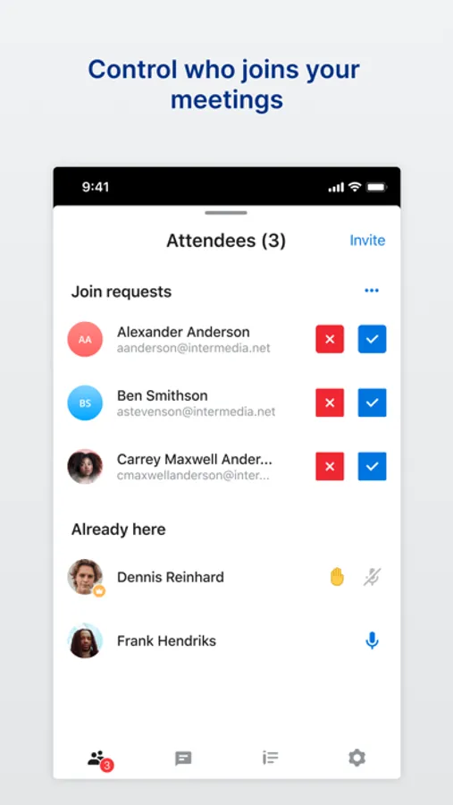 – Control audio and view current online attendees lists