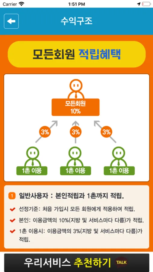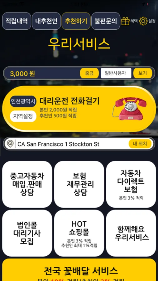 - 추천한 친구가 대리호출시 3%도 내게로 적립~