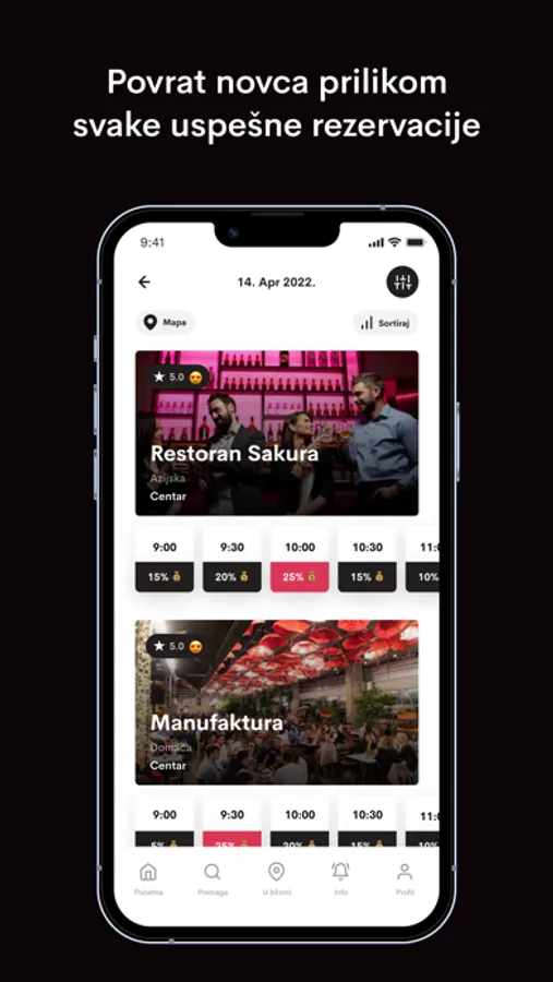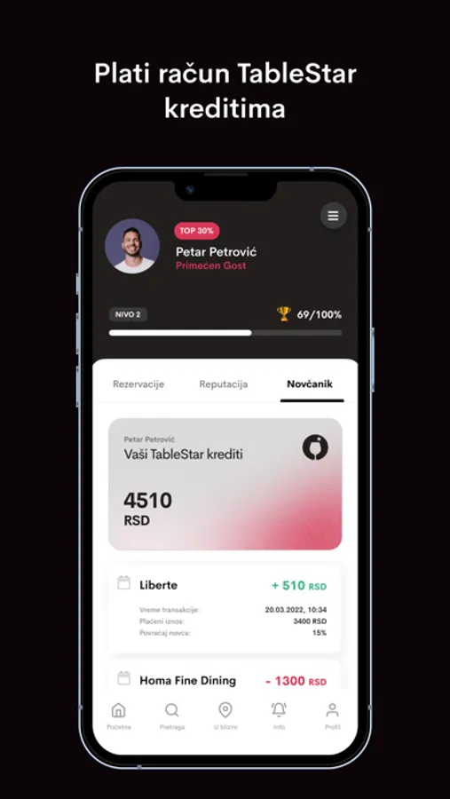 The quickest and most reliable way to make reservations in Belgrade. The average wait for reservation approval is just 15 seconds! But this is just the tip of the iceberg; with each reservation you earn points and as your level increases you earn a higher cashback each time on you reservation. Our top users earn up to 20% cashback from TableStar! You can use your cashback to pay your bill at your next reservation or you can withdraw it to your bank account. Just make a reservation, arrive at the venue, and then open the app to scan of photograph your receipt. With each successful receipt verification, you are also rewarded with reputation points. As you reputation increases the % of cashback you get increases and the venues are willing to free up a table for you even at the most popular times as well as during popular music events! You can of browser venues by category, by those which are nearby or by typing its name or city area in the search bar.