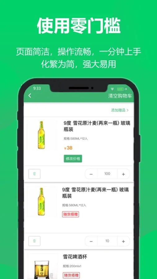 - 快消酒水 支持满减满赠换盖退瓶,各种返利等灵活促销方案