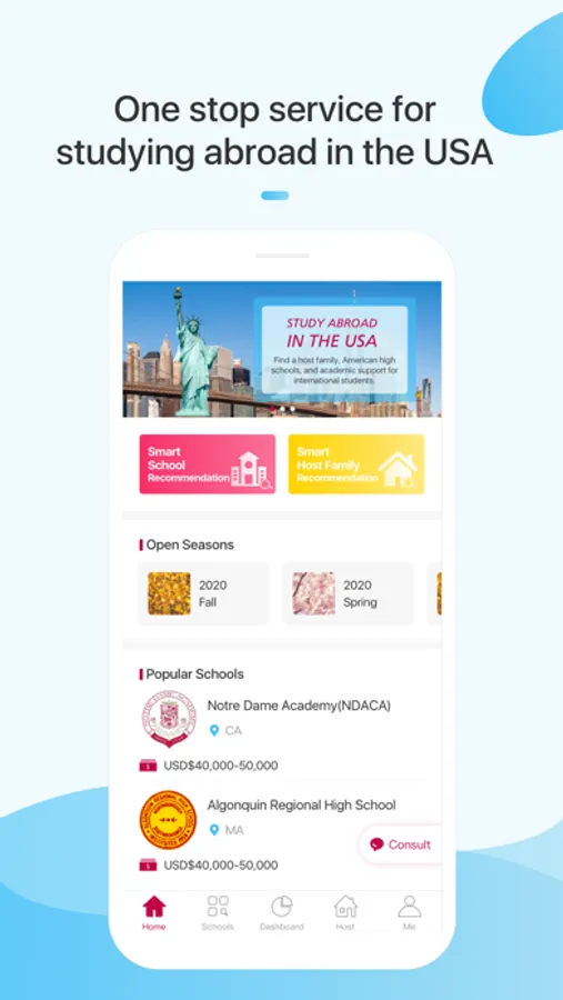 Looking to send your K-12 student to the USA? Easily get recommendations for schools that meet your student's needs or find hosts that meet our Love-Guide-Nurture standard. Submit your application package and get real time updates about your applications progress.