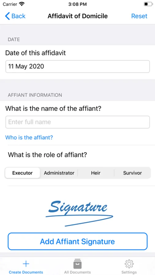 An affidavit of identity pledges that the person signing the affidavit swears they are who they say they are.