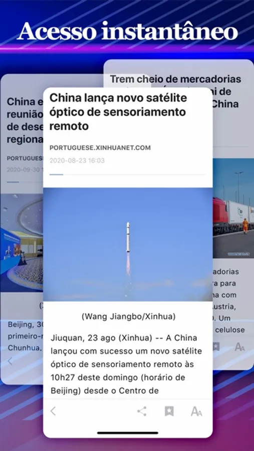 - Acesso a tudo o que você precisa de saber sobre as últimas novidades sobre a China, o Mundo, a Economia e muito mais;