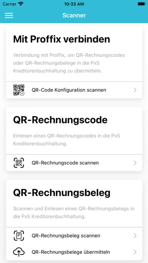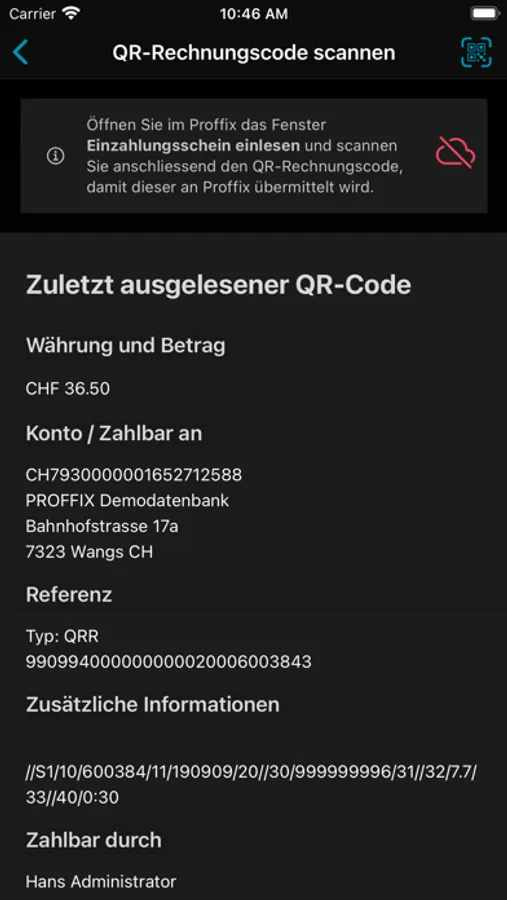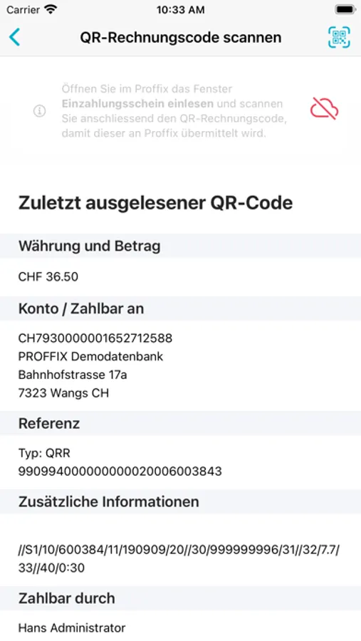 Ab dem 30. September 2022 werden der rote und orange Einzahlungsschein endgültig durch die QR-Rechnung abgelöst. Mit der Proffix Scanner App steht Ihnen eine kostenlose App zur Verfügung, mit welcher Sie Ihre QR-Rechnungsbelege direkt an Proffix übermitteln, bezahlen und verbuchen können. Die Scanner App kann auch nur den QR-Code auslesen und übermitteln, ohne dass Sie einen kompletten QR-Rechnungsbeleg einscannen müssen.