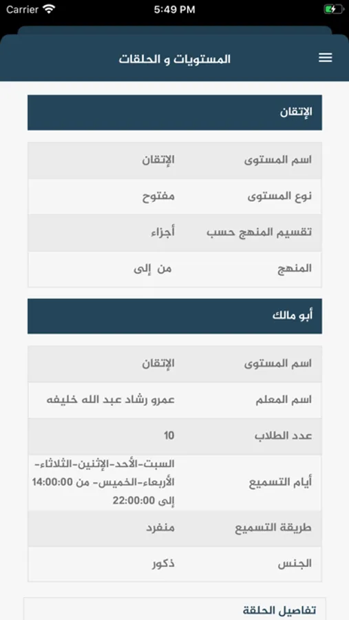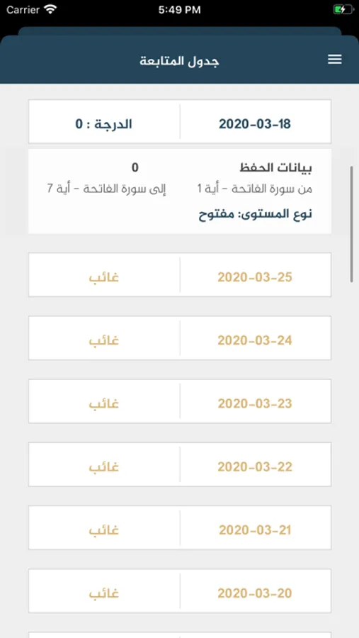 يمكن المستخدم سواء المعلم او الطالب من متابعه مستوى حفظه ومراجعته بطريقة منظمة.