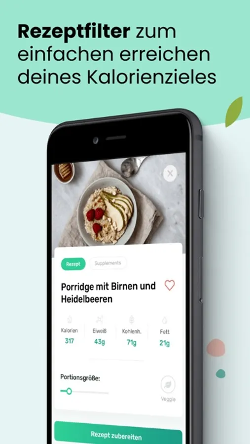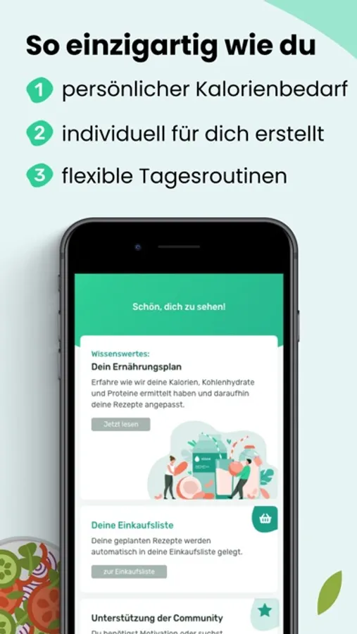 •Über 1200 Rezepte werden auf deinen Ernährungsplan angepasst. So bleibt die Ernährung abwechslungsreich und zu jederzeit flexibel.