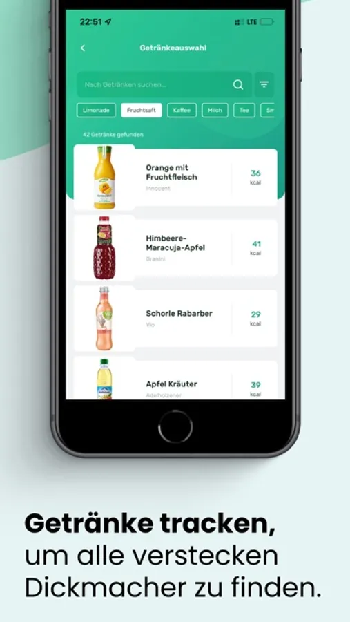 Keine verstecke Kalorien. Der Getränke tracker sorgt dafür, dass du nicht ausersehen mehr Kalorien aufnimmst als empfohlen.