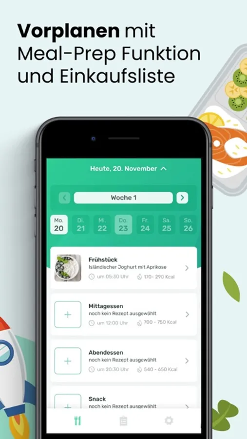 •Unsere künstliche Intelligenz, welche Meal Planner genannt wird, sortiert die Rezepte vor und zeigt diese passend für jede Mahlzeit an.