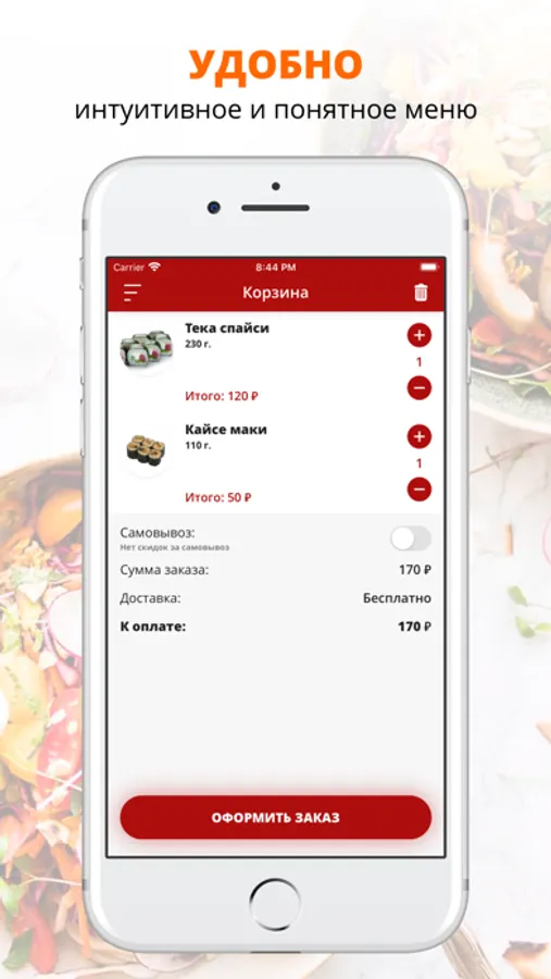Заказывайте ваши любимые блюда у нас, и Вы останетесь довольны качеством сервиса. У нас работают лучшие повара, а курьеры приятно порадуют вежливостью и быстрой доставкой.