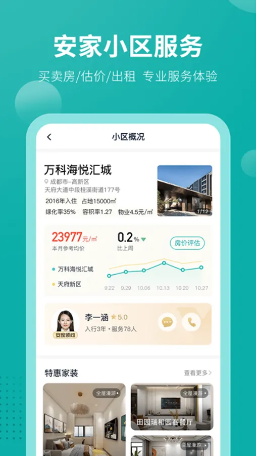 &房价评估:输入小区名称即可了解房价走势和历史成单数据,填充房屋面积,户型,朝向,位置信息,免费获得大数据智能房屋估价单;