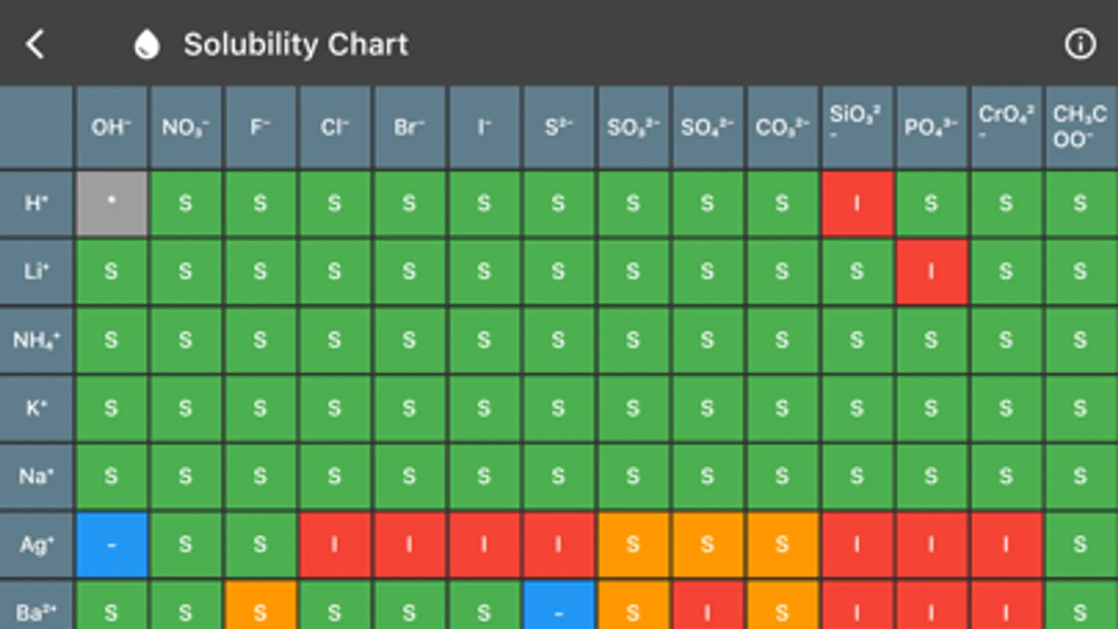 The table has a long-form approved by the International Union of Pure and Applied Chemistry (IUPAC) as the core. Besides the elements, you can use the Table of solubility.