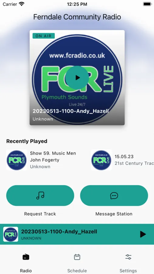 Green Background FCR in dark green lettering with lighter green shading of the letters