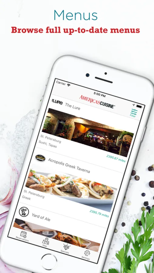 • Real Current Menus Approved by each Restaurant