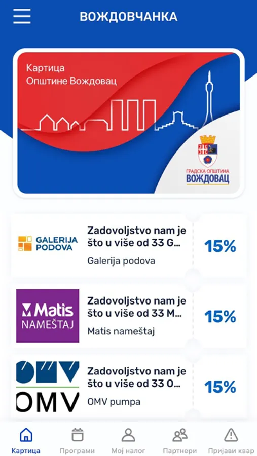 Вождовчанка картица Вам омогућава сјајне попусте у који су укључени наши партнери и сваки од њих Вас награђује попустима за куповину или коришћење њихових услуга.