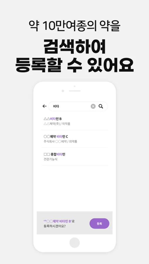 약꾹 앱에서는 식품의약품안전처에서 제공하는 10만여개에 의약품 및 건강기능식품을 검색하여
