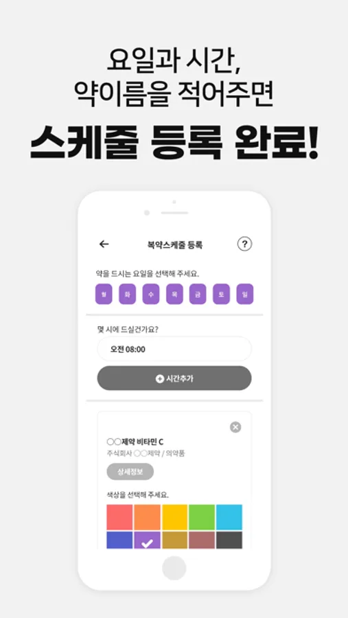 간단하게 복약스케줄을 등록 할 수 있습니다.