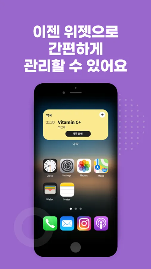 또한 위젯을 통해 시간대별 복약스케줄을 더욱 쉽게 확인하실 수 있습니다.