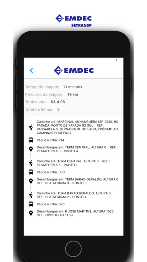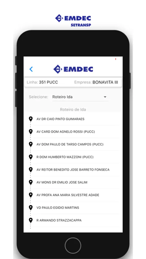 O app também disponibiliza agendamento de atendimento presencial e de visita educativa, Fale Conosco, Dicas de Segurança, emissão de guia de pagamento específica para transportadores, últimas notícias sobre a implantação do BRT, e links para as redes sociais da Emdec.