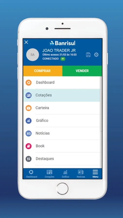 Para acessar o aplicativo Banrisul Corretora, basta utilizar seu código de investidor e senha do Homebroker.